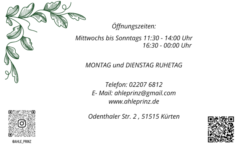 Wir wünschen Euch einen schönen Aufenthalt in unserem "Ahle Prinz" und hoffen, dass wir uns bald wiedersehen.