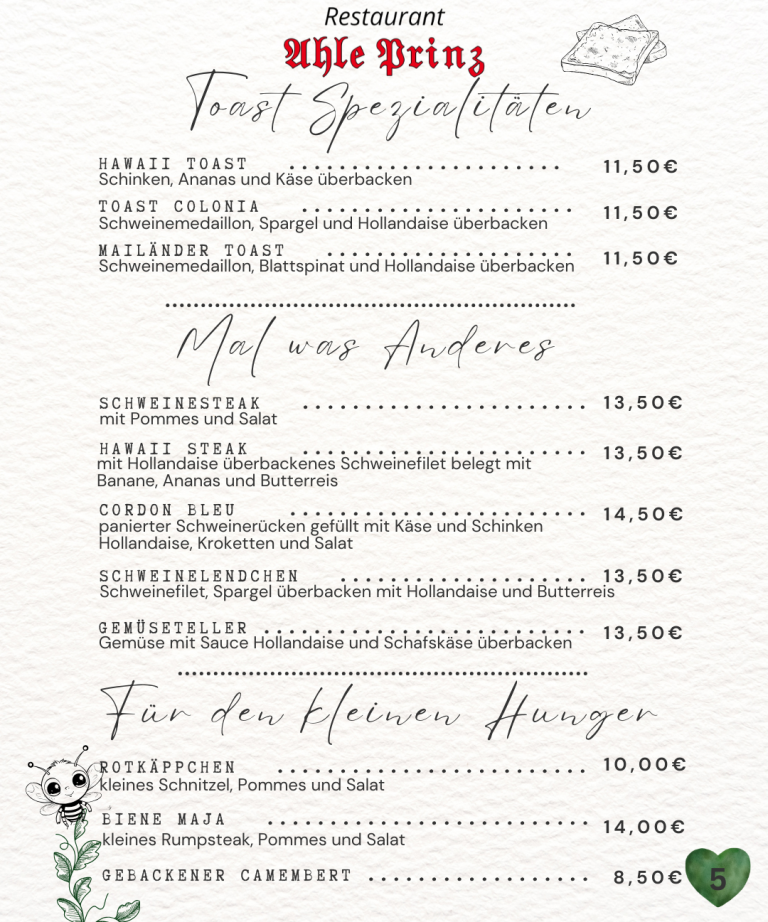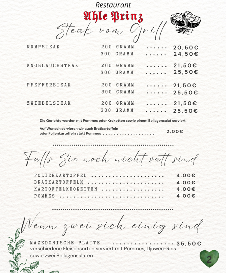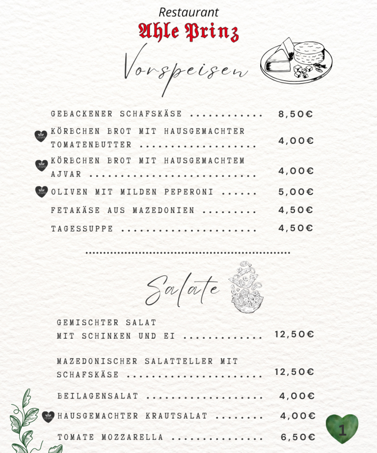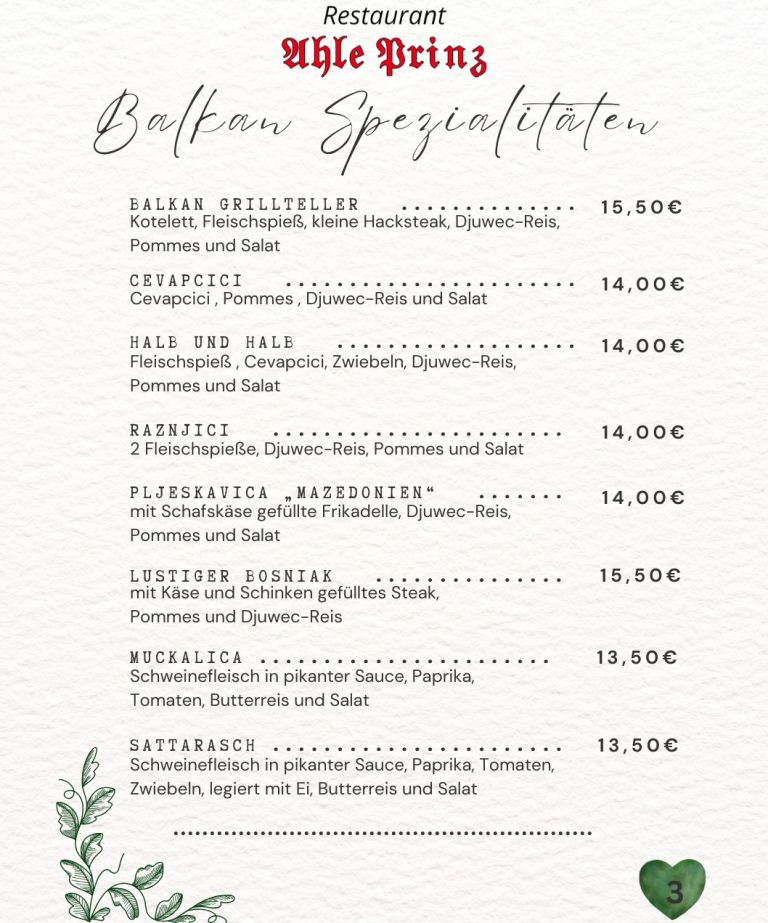 Willkommen beim Ahle Prinz! Unsere Küche bietet von der Hausmannskost bis zur Balkanküche alles was das Herz begehrt – perfekt für einen entspannten Moment mit gutem Essen.